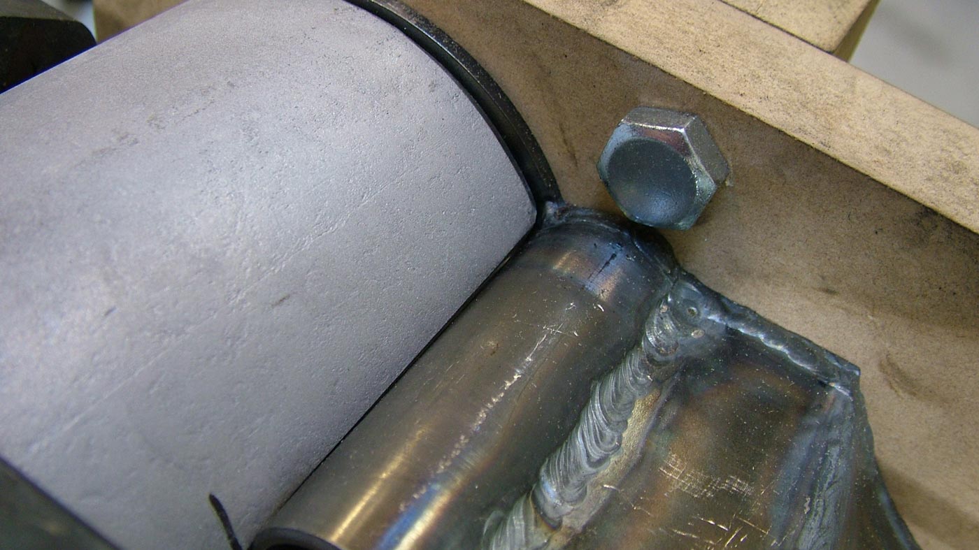 Det mest kritiska svetsen blir på mitten av det stora röret – går den sönder, trillar ju hela bakvagnen samman… Jag har gett upp att försöka hitta någon som kan bocka ett 88,9mm-rör, därför svetsas det istället.